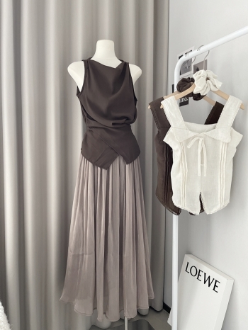 【Z829258】收腰綁帶背心+鬆緊腰珠光雪紡裙