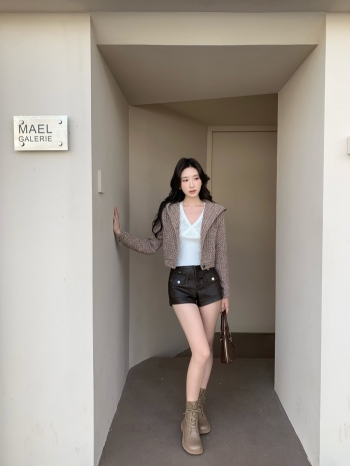 【Z828304】美式時髦高腰雙口袋闊腿PU皮短褲