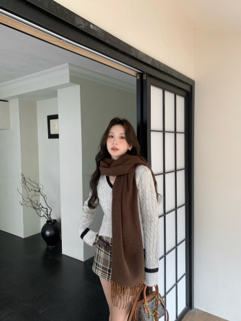 【Z828424】高級感雙面純色仿羊絨披肩圍巾