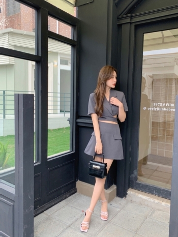 L 上肩寬40 胸寬43 衣長38 下 腰圍35 臀圍47 裙長39