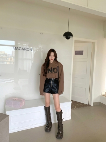 【Z826567】高腰顯瘦拉鍊口袋皮短褲