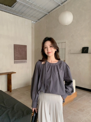【Z826812】韓風側釦澎袖設計上衣