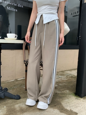 【Z827677】反摺撞色褲頭側線條寬褲