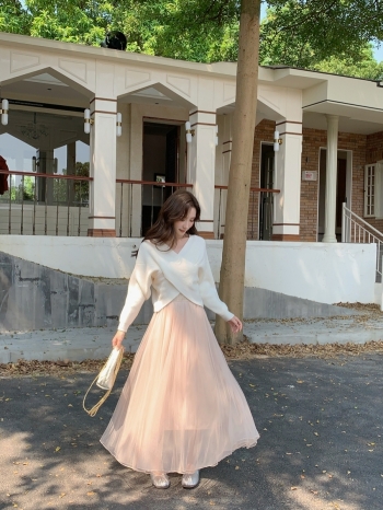 【Z827969】不規則感針織衫+紗裙洋裝