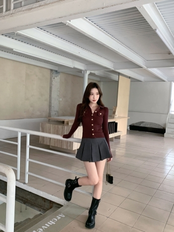 【Z828085】附腰帶減齡毛呢百褶裙