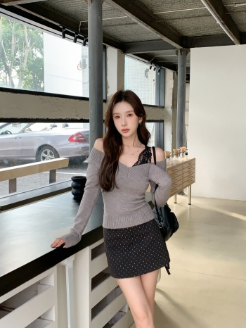 【Z828149】附腰帶毛呢波點設計A字短裙