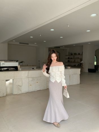 【Z828185】氣質簡約高腰褶皺設計魚尾裙