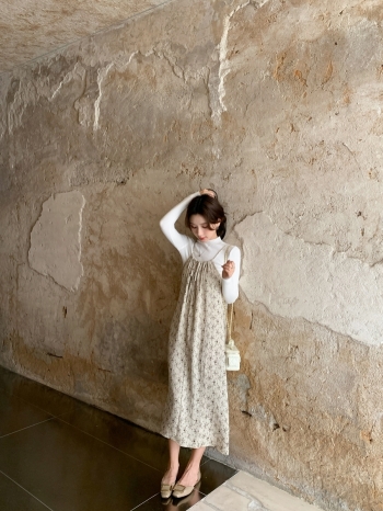 【Z828153】浪漫法式碎花背心裙套裝