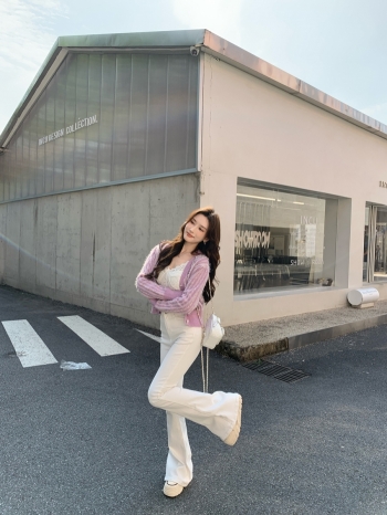 【Z828194】白色愛心口袋高腰微喇牛仔褲