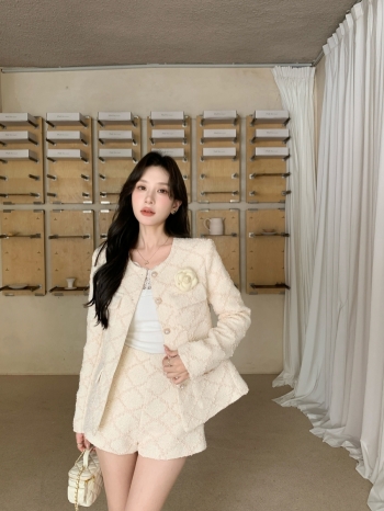 【Z828234】小香風菱形格粗花呢外套+短褲套裝