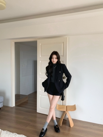 【Z828244】單排釦口袋設計感呢料西裝套裝