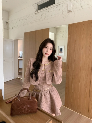 【Z828250】小香風拼接亮片抹胸短裙三件套
