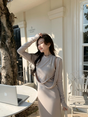 【Z828360】氣質套裝拼接假兩件長T+長裙兩件套