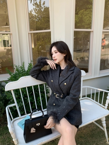 【Z828398】細閃亮片重工西裝羽絨毛呢外套