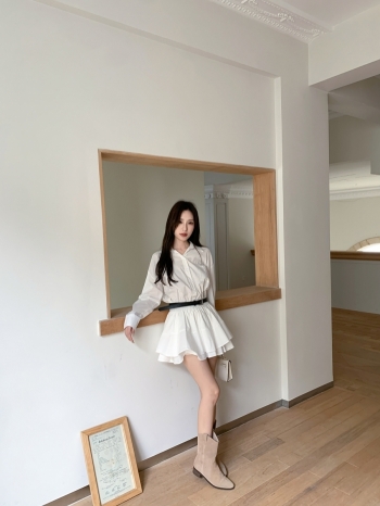 【Z828496】溫柔氣質翻領收腰減齡襯衫連身裙