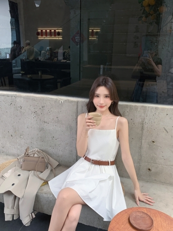 【Z828586】氣質清新百搭方領短洋裝(配腰帶)