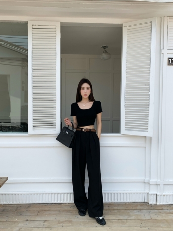 【Z828539】日常極簡風垂感顯瘦壓褶西裝褲