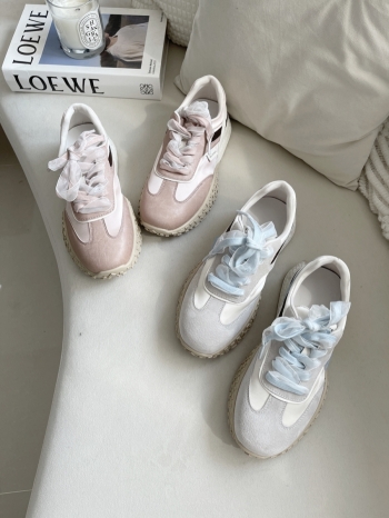 【Z828683】厚底百搭絲帶拼色芭蕾風阿甘鞋