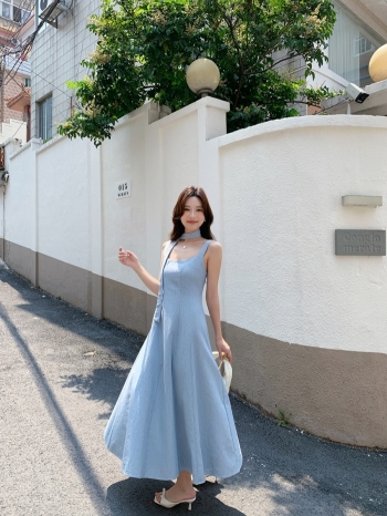【Z828704】收腰A字裙型設計~約會度假洋裝(配飄帶)