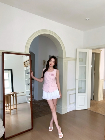 【Z828728】小香風修身馬甲背心+雪紡蛋糕裙套裝