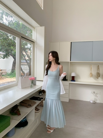 【Z828741】輕熟感網紗拼接吊帶洋裝+防曬開襟外套