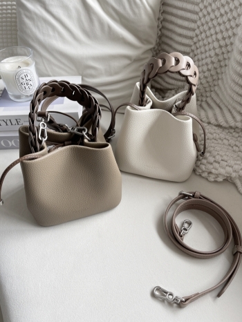 【Z828789】鏤空手提軟皮荔枝紋水桶包