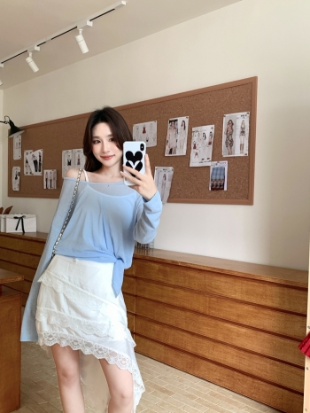 【Z828828】不規則下擺設計感蕾絲拼接蛋糕裙