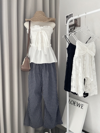 【Z828864】甜美風蝴蝶結綁帶背心+格紋褲套裝