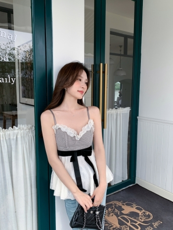 【Z828821】甜美設計感蝴蝶結收腰細肩上衣