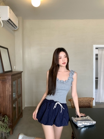 【Z828872】美式高腰雙色拼接抽繩花苞氣球裙