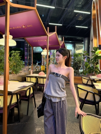 【Z829404】皮帶釦設計褶皺花邊平口背心