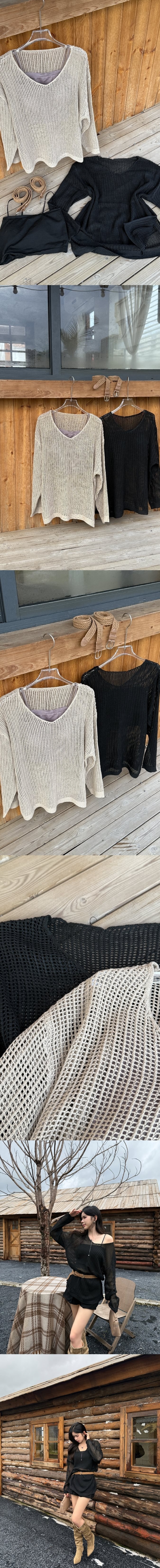 【Z829613】慵懶風編織腰帶鏤空針織衫
