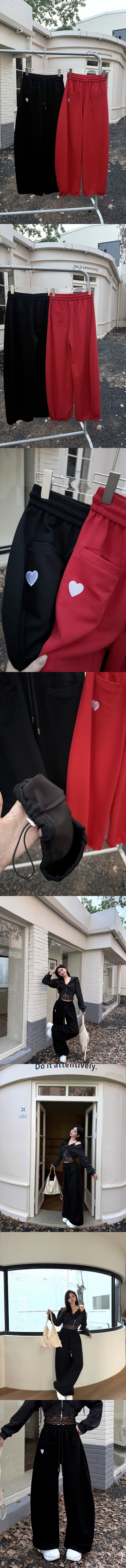 【Z829687】愛心刺繡雙口袋抽繩長褲
