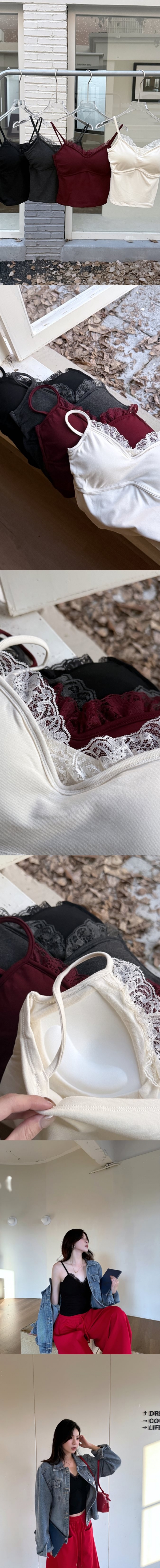 【Z829702】蕾絲V領帶胸墊細肩背心