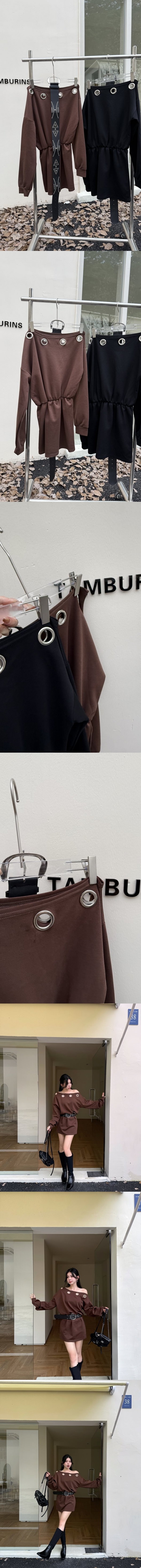 【Z829719】一字領鏤空圓環設計感洋裝(附腰帶)