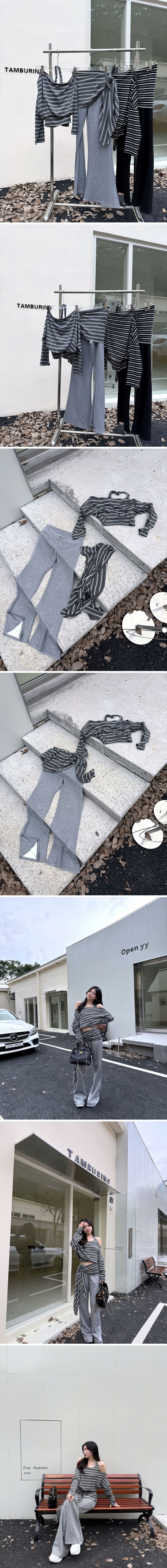 【Z829730】百搭條紋長T微喇休閒褲套裝