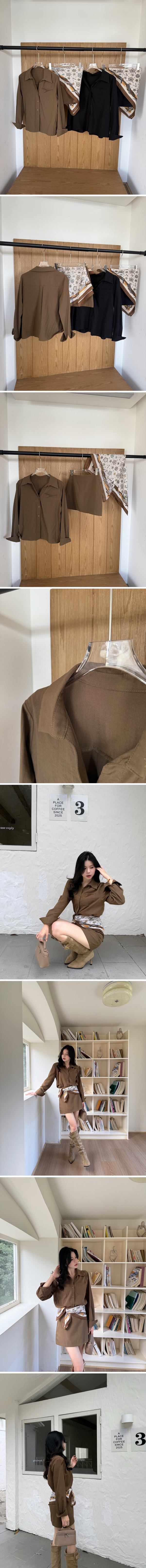 【Z829741】翻領排釦襯衫短裙套裝(附絲巾)