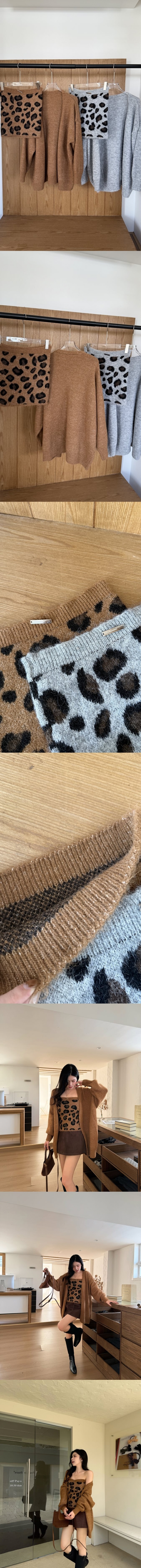 【Z829710】軟糯百搭豹紋針織罩衫套裝