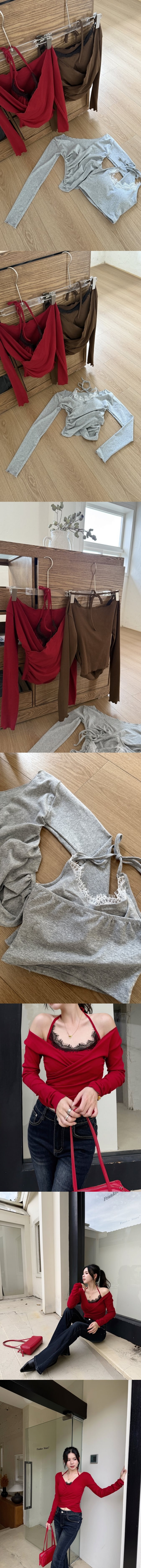 【Z829744】交叉V領長袖上衣兩件套