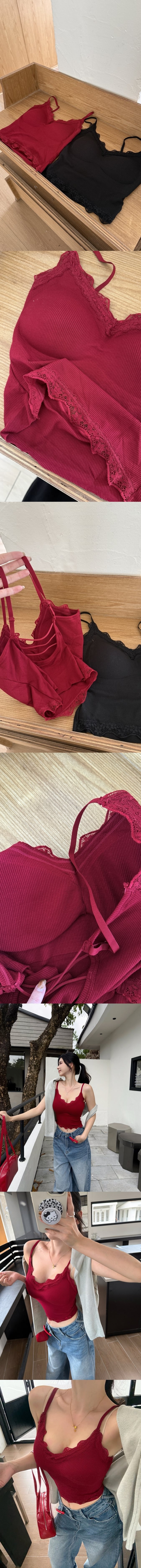 【Z829764】附胸墊V領蕾絲邊美背背心