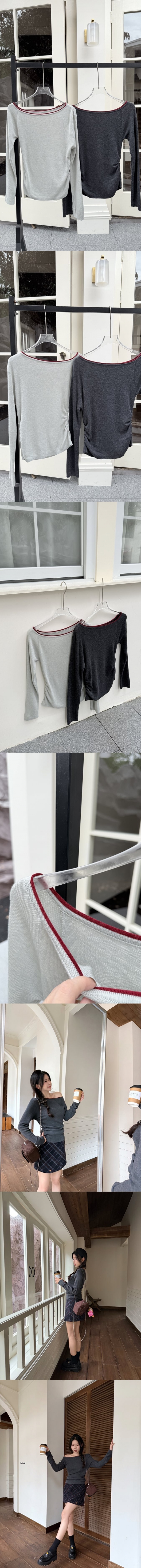 【Z829778】撞色領邊斜肩抽摺針織衫