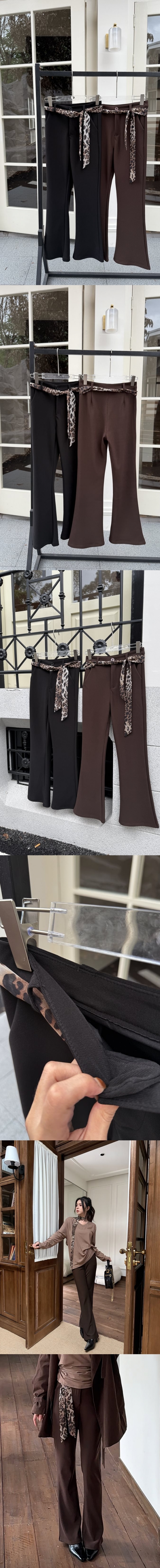 【Z829779】豹紋繫帶高腰微喇叭褲