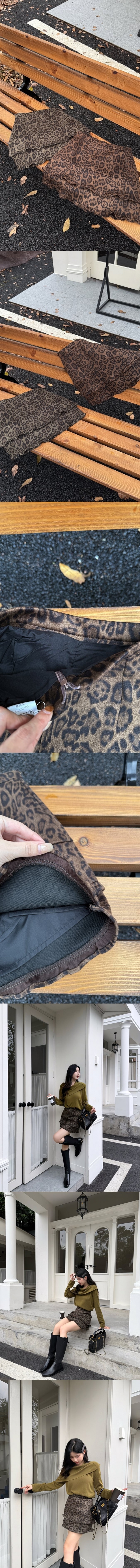 【Z829787】麂皮絨豹紋荷葉邊短裙