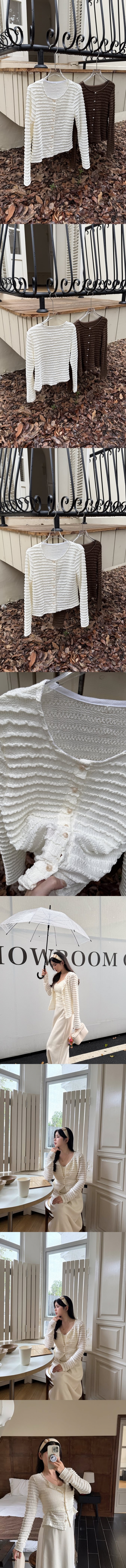 【Z829789】波浪紋提花鏤空排釦針織衫