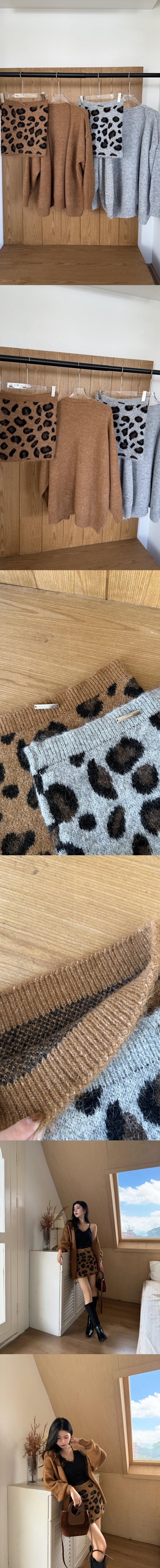 【Z829710】軟糯百搭豹紋針織罩衫套裝