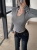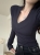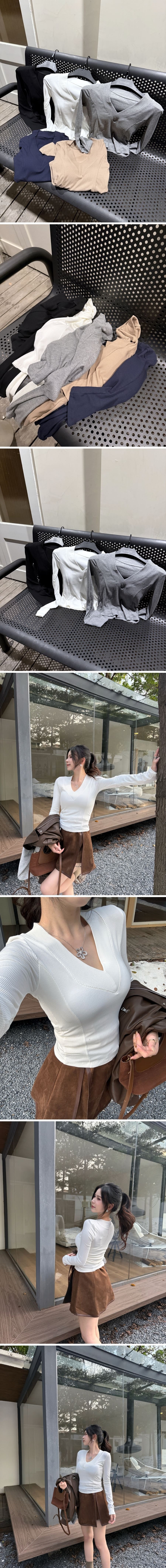 【Z829793】V領帶胸墊顯瘦加絨長T