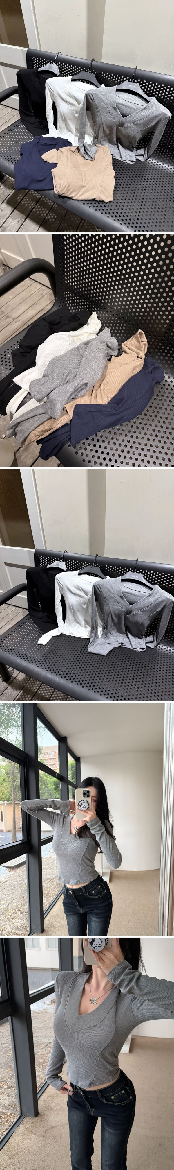 【Z829793】V領帶胸墊顯瘦加絨長T