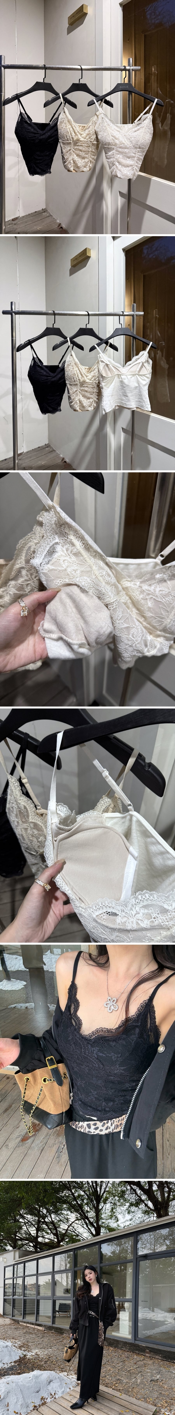 【Z829794】微磨毛V領蕾絲吊帶背心