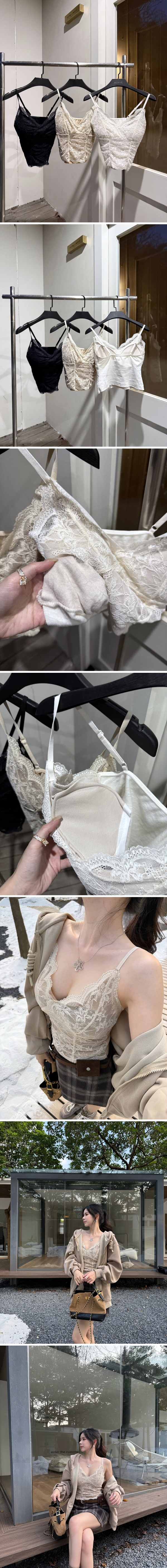 【Z829794】微磨毛V領蕾絲吊帶背心