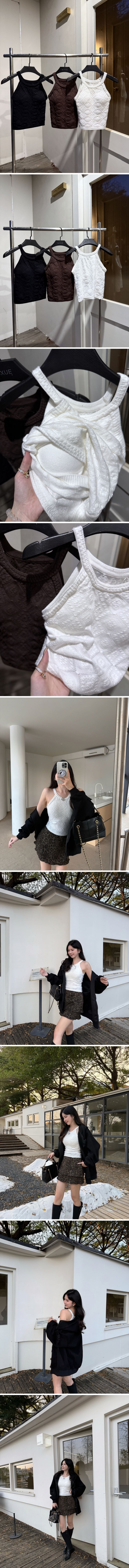 【Z829803】提花掛脖削肩無袖針織背心
